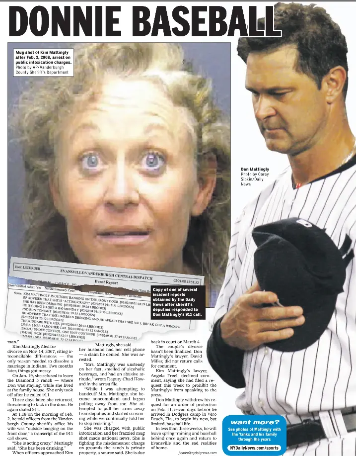 While estranged from don mattingly in 2007 kim mattingly was arrested and charged with public intoxication and disorderly conduct after police say she refused to leave his evansville property. Don mattingly s marriage problems which forced him to walk away from his job as joe torre s hitting coach with the dodgers a few weeks ago surfaced in an ugly manner on saturday night.