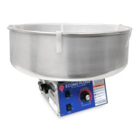 This concessions machine produces over 200 oz. The gold medal econo floss cotton candy machine features a stainless steel cabinet spun aluminum bowl and the whirl grip floss stabilizer. It is all backed by warranty in case you have problems. A cotton candy machine is an essential piece of equipment for concession stands carnivals and children s birthday parties.