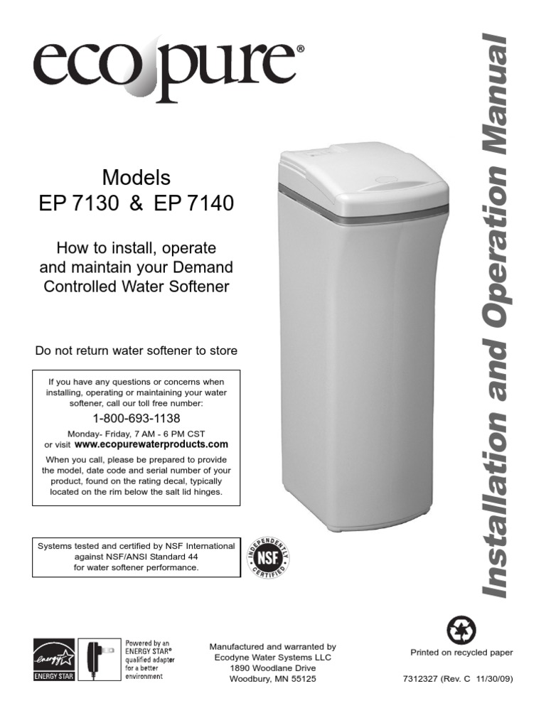 Ecopure water softener manual. Free shipping on all orders. 31 000 grain water softener ep31 features. This system will help extend the life expectancy of water using appliances by letting them run more efficiently. How a water softener works.